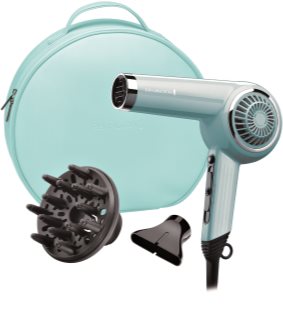 A blue hair dryer with a black handle and a silver nozzle is placed on a teal background. Next to it, there is a black hairbrush with bristles and a black hair clip. | Remington Dryers Bombshell Blue Retro DC4110OB Hair Dryer | 7465a41676536a0e95cfe9590d7d471df1233b223863ec8822b2c4cf6011da6e | 000910704594 | 0 | 0 | 33 | 8 | 0 | 0 | |
