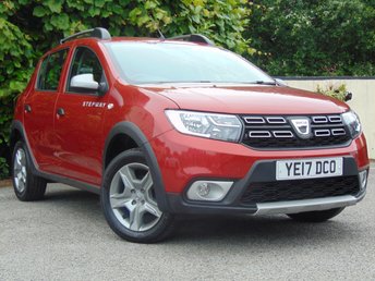 A red compact SUV with a black front grille and a license plate reading 'Y17 DCO' is parked on a gravel surface. The SUV has a black roof rack and is surrounded by green foliage. | 2017 DACIA SANDERO 1.5 STEPWAY AMBIANCE DCI 5d £8471.00 | 2820a5b06e34e778ebf76353586ec902dd95eca0f70ef937f3a84f8a4dff3d2c | 000910705303 | 0 | 0 | 35 | 9 | 0 | 0 | |