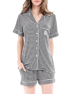 A woman is wearing a striped pajama set with a button-up top and shorts. | 5da0b4d4210d NORA TWIPS Women's Short Pajamas Set, Pyjamas Set Shorts Women, Ladies Pyjama Set, | 5b05adbfcdadae15aa44becc11b68bb601c68a249af8bca13d9e0372b00a0800 | 000910705891 | 0 | 0 | 14 | 14 | 0 | 0 | |