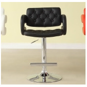 A black leather chair with a chrome base is positioned in a room with a white wall and a light-colored floor. | Homelegance Ride Tufted Black Airlift Swivel Stool [Set of 2] | 2a7f95fbe85a9d8d830e4be5e8474391c487670bb9e61d8737f6880e3ca6b5fa | 000910705816 | 0 | 0 | 21 | 10 | 0 | 0 | |