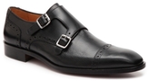 A pair of black leather dress shoes with a shiny finish and a brown leather toe cap. The shoes have a sleek design with a pointed toe, a lace-up front, and a strap with a buckle on the side. The shoes are placed on a white background with a shadow cast to the right, indicating a light source from the left. | Mercanti Fiorentini Double Monk Strap Slip-On | 459eceeed17442fc11ad86da203f99714cc662d069778610a6e257c3da0e468f | 000910686988 | 0 | 0 | 61 | 6 | 0 | 0 | |