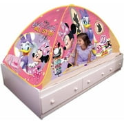 A child is sitting inside a Disney-themed tent with a pink and white color scheme. The tent features Mickey Mouse and Minnie Mouse characters, along with other Disney elements. The child is wearing a purple dress and is surrounded by Disney-themed items such as a toy umbrella, a toy purse, and a toy cake. The tent is set up in a room with a white bed and a white dresser with knobs. | Playhut Disney Minnie Mouse 2-in-1 Tent | ddb571e8343b6485563c54522a907cfedde114464227bef3f7dce9455a1866c0 | 000910706312 | 0 | 0 | 72 | 6 | 0 | 0 | |