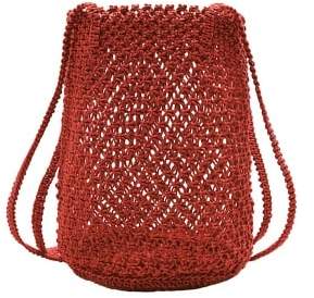 A red knitted tote bag with a textured surface and a long strap hanging down on the right side. The bag has a diamond-shaped pattern and is set against a white background. | MANGO Braided net bag | fa3acf3bef3ee7cb8a105b3c734d27629e975b52922e03800018a38902ea5e6e | 000910706241 | 0 | 0 | 32 | 4 | 0 | 0 | |