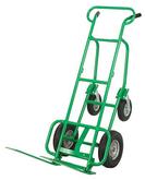 A green, wheeled, metal dolly with a flat, rectangular platform and a curved handle on top is positioned on a white background. | HVAC Hand Trucks | 29192f4a18691885b96c970a2a357701b850c98c81ab4f5ab4311d23587019cd | 000910706641 | 0 | 0 | 22 | 3 | 0 | 0 | |