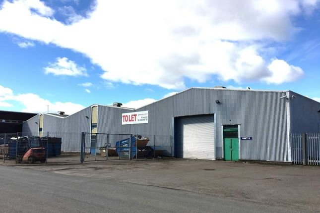A large industrial building with a blue and white color scheme is surrounded by a chain-link fence. There are two dumpsters near the fence, and the building has a green door and a white sign with the word 'TOLE' visible. The sky is partly cloudy with a few birds flying in the distance. | Thumbnail Light industrial for sale in Block 6, Arrol Road, Dundee | e2fb9d7c1b7cd68b6cc2f51cefb4b9476ba1a39b8c435105d8ac86be96b968d0 | 000910706656 | 0 | 0 | 53 | 11 | 0 | 0 | |