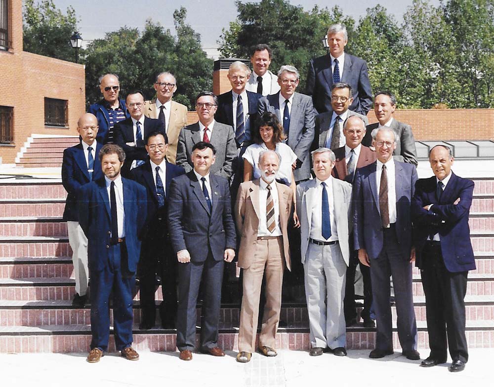 A group of men in business attire are standing on a set of stairs. They are all wearing suits, ties, and dress shoes. The men are posing for a photo, and there are trees and a building in the background. | IAHR Council meeting in Madrid, Spain (1991). | d39ab0a5bed892c138148f9aaa864969d31a0124b9a73c4cbdba3a69a572e5b4 | 000910706306 | 0 | 0 | 40 | 7 | 0 | 0 | |