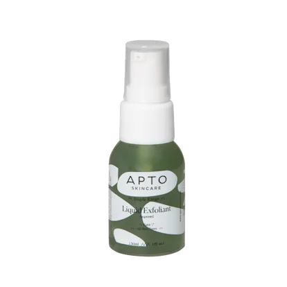 A white bottle with a green liquid inside is displayed against a white background. The bottle has a white cap and is labeled 'APTO SKINCARE'. The label also features a green and white pattern and the text 'LIQUA EXFOLIANT'. | Liquid Exfoliant with Seaweed | 3e94cd1a11093ac8bf82f02cf6cc19abaed19d54d9dd3462e94fe6a32e236d14 | 000910706774 | 0 | 0 | 39 | 4 | 0 | 0 | |