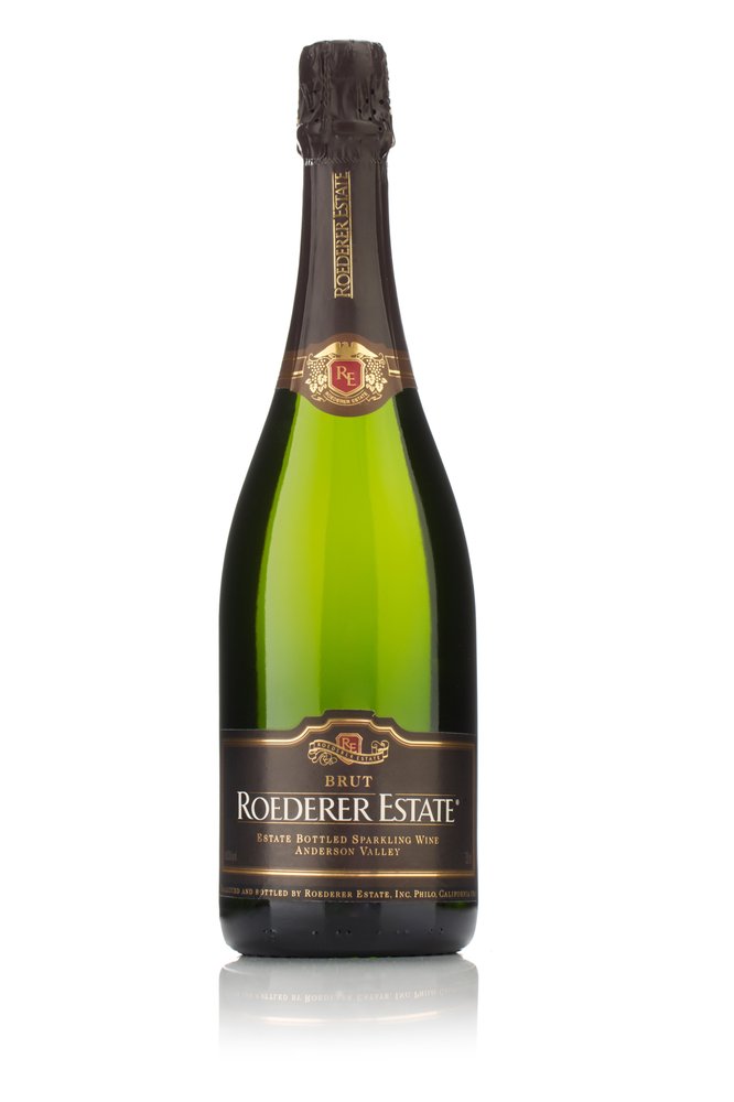 A bottle of Roederer Estate sparkling wine with a dark label featuring gold lettering and a red emblem. The bottle is filled with a clear, greenish liquid and has a cork stopper with a black foil wrapper. The bottle is placed on a white surface with a soft shadow beneath it. | Roederer Estate - (New) 131 Photos & 84 Reviews - Wineries | 9c1d899a0d876b83cc80112f0510e9638d9d53b0ba6ee2c7a9867c731405590d | 000910706767 | 0 | 0 | 51 | 11 | 0 | 0 | |