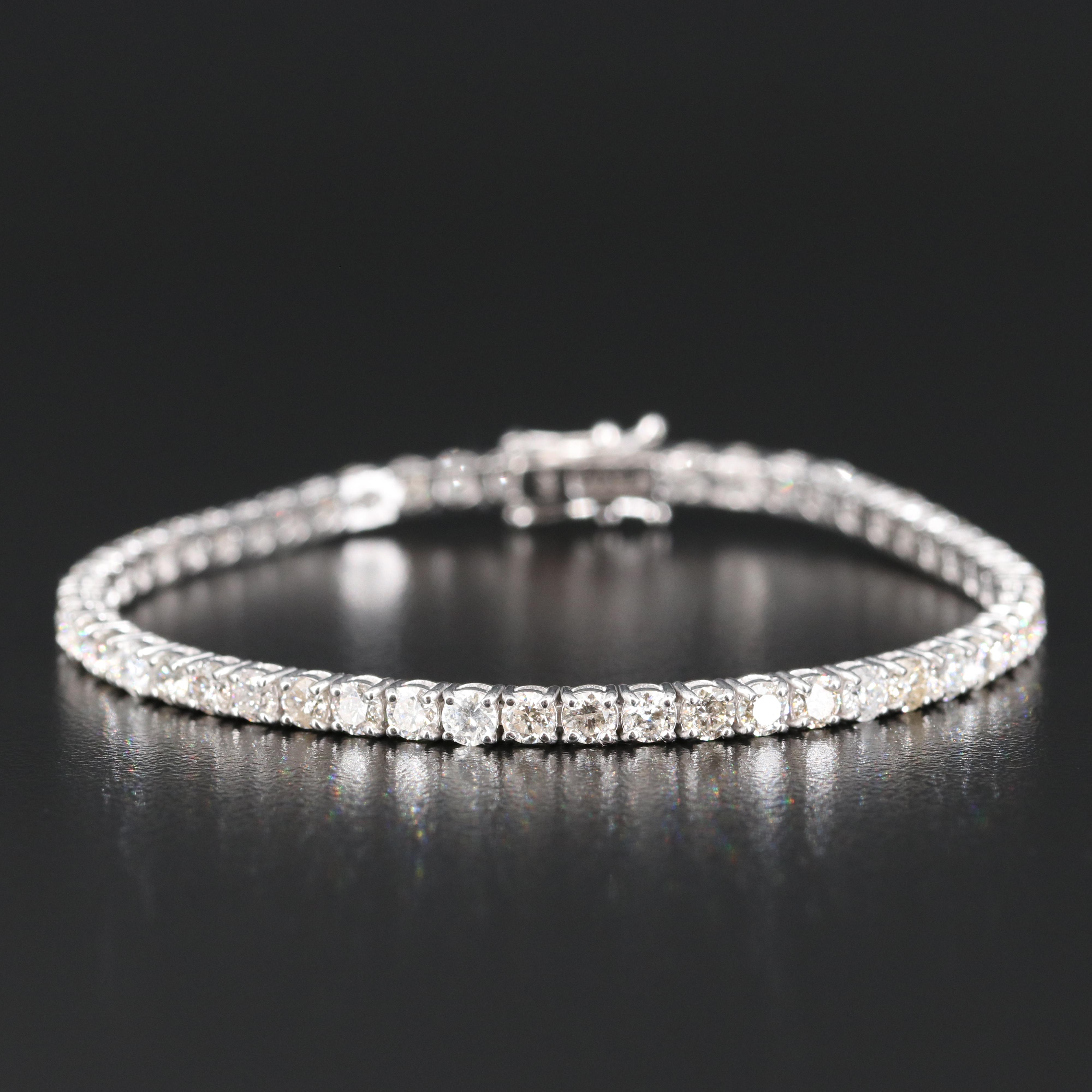 A close-up image of a silver bracelet with a row of round-cut diamonds set in a prong setting. The bracelet is placed on a dark surface, and the lighting highlights the sparkle of the diamonds. The clasp of the bracelet is visible at the end, and the overall image has a shallow depth of field, with the background being out of focus. | 14K 6.56 CTW Diamond Bracelet | d75329870c91d9ca3a3a425d83cdfafcfb01d26d50cca6b6723f2c97e8bbcaa9 | 000910708528 | 0 | 0 | 62 | 5 | 0 | 0 | |