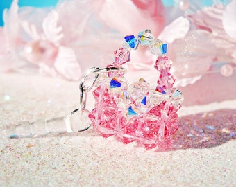 A pink crystal tiara with blue and clear facets is placed on a sandy surface. The tiara is adorned with a large blue crystal at the center, surrounded by smaller crystals. The background features a soft-focus view of pink and white flowers, creating a romantic and whimsical atmosphere. | Pink Swarovski Crystal iPhone Dust Plug Charm, Lt. Pink Crystal Purse iPhone Bling | abd90d3839fefce155f153a419fed017df75e594ae51d24a898103f48ea985da | 000910708457 | 0 | 0 | 48 | 13 | 0 | 0 | |