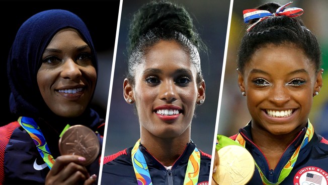 A vertical collage of three women, each with a different hairstyle and attire, holding Olympic medals. From top to bottom, the first woman has a hijab and is smiling, the second woman has a bun and is also smiling, and the third woman has a ponytail with a red and blue ribbon and is smiling. | #BlackGirlMagic Takes Spotlight at Olympics | ff9efb5fc363bdfc979cd2a52f62c042241ce871b8a9cd6319d4d43828265e9c | 000910708660 | 0 | 0 | 55 | 5 | 0 | 0 | |