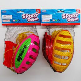 Two colorful sports balls are displayed on a white background. The balls are encased in protective mesh bags with the brand name 'SPORT GAME' and a tagline 'PLAY SAFE'. The balls are in shades of pink, green, yellow, and red, with the pink ball on the left and the yellow ball on the right. The mesh bags have a red border and are secured with a yellow cord. | 72 Units of Football Sporting Game - Sports Toys | 3723abbf1cc407ce61c4eed075788236155f02418abd20941f4b52d7a95b709a | 000910708675 | 0 | 0 | 68 | 9 | 0 | 0 | |