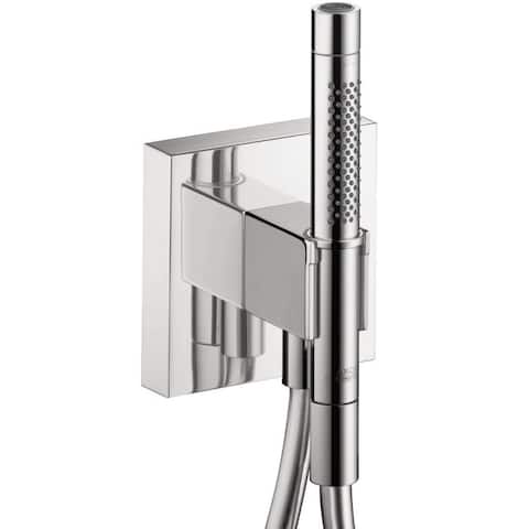 A sleek, modern showerhead with a metallic finish and a textured grip is mounted on a wall. The showerhead has a cylindrical body with a series of holes and a metallic nozzle at the end. The wall is white, and the showerhead is positioned against a white background. | Hansgrohe Axor Starck Organic Porter Chrome | 7b9149a4869520fd72eda94d906810c2c32b56fe0f78017afc356184065041b2 | 000910708748 | 0 | 0 | 48 | 6 | 0 | 0 | |