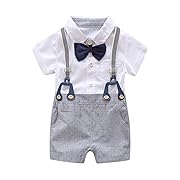 A baby outfit with a white shirt, grey overalls, and a blue bow tie with a silver buckle. | Baby Boys Gentleman Outfits Suits, Infant Short Sleeve Shirt+Bib Pants+Bow Tie Overalls Clothes Set | 2b9e9e80a87d36cbb89c1e853900e7310580a0bdb57c6c109e06527a22daaa7a | 000910708758 | 0 | 0 | 18 | 14 | 0 | 0 | |