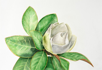 A watercolor painting of a white flower with a green leafy stem and a few green leaves. The flower has a textured appearance with visible brush strokes, and the background is a plain, light color. | Magnolia branch with leaves and white flower isolated on white background | 7e80adfbdb0fa7de77427be8e2e45a0481ed19467d15edb7ed6e9dca30ad54b7 | 000910708793 | 0 | 0 | 35 | 11 | 0 | 0 | |