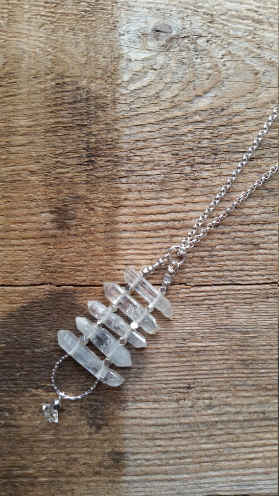 A silver necklace with a crystal pendant is lying on a wooden table. | Double terminated quartz crystal ladder necklace with silver and a herkimer diamond | 33d0c26dbfa90115837b94e83ade5a2aed601e79e510d51c1d0ab7c5c18487a3 | 000910709367 | 0 | 0 | 13 | 12 | 0 | 0 | |