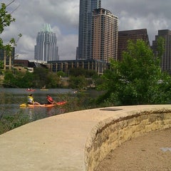 A group of people is kayaking on a river with a city skyline in the background. The city has tall buildings, and the sky is partly cloudy. The kayakers are wearing life jackets and are paddling in a line. There is a stone wall on the riverbank, and the water is calm. | Photo taken at Lady Bird Lake by Thiana F. on 3/30/2013 | a3fa216900418641efc76e9ae54eb8c719a38965665e9d4a302578b6f0a72a66 | 000910709683 | 0 | 0 | 52 | 11 | 0 | 0 | |