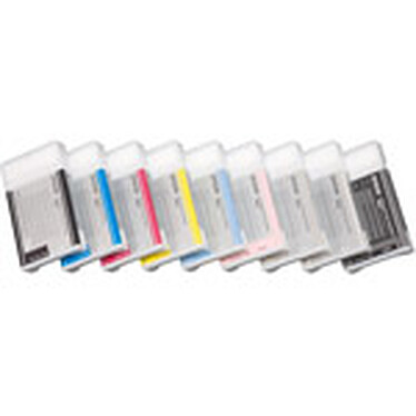 A row of colorful plastic storage cases is displayed against a white background. The cases are arranged in a gradient of colors, starting with a dark blue on the left, followed by a black, then a red, an orange, a yellow, a green, a light blue, and finally a white case on the right. Each case has a label with text and a barcode. | Epson cartouche T5629 (Gris clair) | e629f16e08cc21e7b26db3f64826e221329b64aebd3d4c7e5ec7080679abba17 | 000910709605 | 0 | 0 | 64 | 5 | 0 | 0 | |
