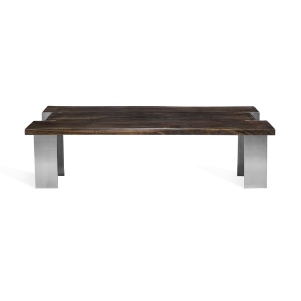 A rustic wooden bench with a dark brown finish and visible grain patterns is set against a white background. | Malin Coffee Table By Interlude | 118e02bd3b95d1eeefe7e63396aec198eb128db69cb71f0d4157335b7ae6e06e | 000910709607 | 0 | 0 | 19 | 5 | 0 | 0 | |