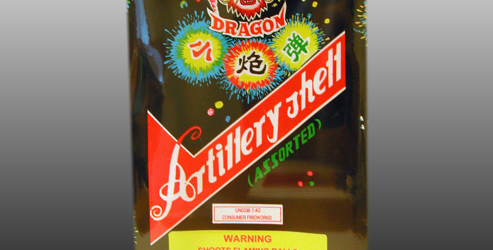 A bottle of Dragon's Breath Fireworks is displayed against a white background. The label features a red and green design with Chinese characters and a dragon illustration. The bottle is wrapped in a yellow and red paper with the words 'Dragon's Breath Fireworks' and 'Artillery Shells' written in bold letters. There is a warning label at the bottom with the text 'WARNING: PHOTO FLASHING DAZZLE'. | Premium Artillery Shell (12-Shot) | 8c85536877dbc53ef9e5269df6d3f5e8131f4c66de9a48b855efa6e5ba06696c | 000910709598 | 0 | 0 | 65 | 4 | 0 | 0 | |
