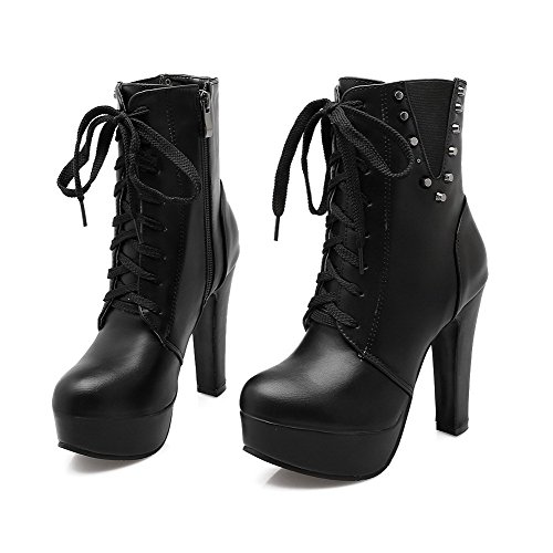 A pair of black high-heeled boots with laces and silver buckles on the sides. | High Solid Zipper Women's Boots Round Heels Black Toe Closed Allhqfashion PU qOgnfx6 | 32c4fce1233c5801f8df0fc3487c3160d5b11e85b579617fa409c9a4d1bbcfd2 | 000910709783 | 0 | 0 | 14 | 13 | 0 | 0 | |