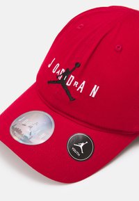 A red baseball cap with a white logo on the front and a black swoosh design on the side. The cap has a circular sticker on the front with a city skyline and the words 'JORDAN' in white. There is also a rectangular sticker on the side with a black swoosh design and the word 'JORDAN' in white. | Jordan - STRAPBACK UNISEX - Cappellino - gym red | 8f2c3f78982a2682f16a5a2e70220aabc9ee063ff2ad243889d15c1944e1a56b | 000910709793 | 0 | 0 | 58 | 9 | 0 | 0 | |