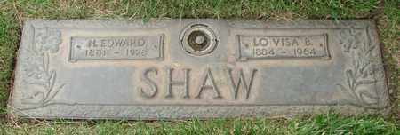 A weathered and aged gravestone with the name 'SHAW' prominently displayed in the center. The stone is set in a grassy area with visible grass blades and a few small rocks. The inscription is in a classic font, and the stone has a decorative border with intricate designs. The surface of the stone shows signs of wear and erosion, indicating its age. | SHAW, NOAH EDWARD - Polk County, Oregon | NOAH EDWARD SHAW - Oregon Gravestone Photos | 216cffac0d5288586bbacfea8d220252cbef9ff5ddd9089d357fa0098a5e26a9 | 000910709822 | 0 | 0 | 62 | 15 | 0 | 0 | |