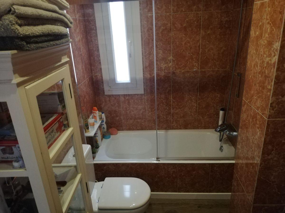 A small bathroom with a white toilet, a white bathtub with a shower curtain, and a window above the bathtub. There is a shelf with towels and toiletries on the left side of the image. The walls are tiled, and the floor is wooden. | For sale of flat in Almer\xc3\xada | da7f29fb5846c8928cc54d634c85f7f8019a355ae55aa20c74540788a212ccb8 | 000910709769 | 0 | 0 | 44 | 6 | 0 | 0 | |