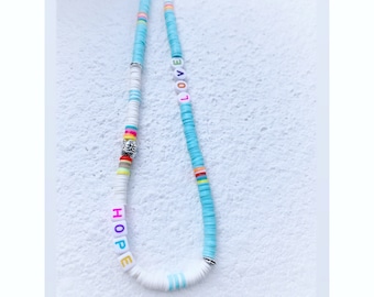 A colorful beaded necklace with a variety of beads in different shapes and sizes, including round, oval, and heart-shaped beads. The beads are strung together with a white cord and feature a mix of bright colors such as blue, pink, yellow, and green. The necklace has a 'HOPE' charm in the center, surrounded by smaller charms with words like 'love', 'dream', and 'believe'. The necklace is displayed against a white background. | White/blue turquoise/buddha customizable laptop jewelry | 00f5d60b27b5c99013f81fe1c9dde2db59ed75f18fdae25b1fc6a47abb7149f4 | 000910687271 | 0 | 0 | 71 | 5 | 0 | 0 | |
