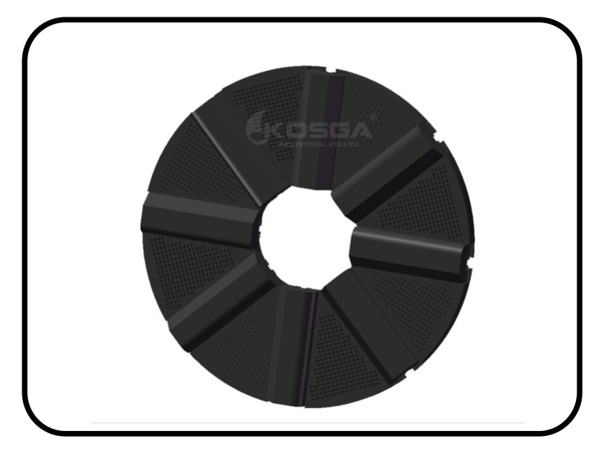 A black circular object with a textured surface and a central hole is centered against a white background. The object has a label on its surface that reads 'KOSA'. | Ball mill rubber lining | 66bab0870a6a91fc8f900f9276fce533ce445920e08bfbf118c51a8372ced64e | 000910687283 | 0 | 0 | 29 | 4 | 0 | 0 | |