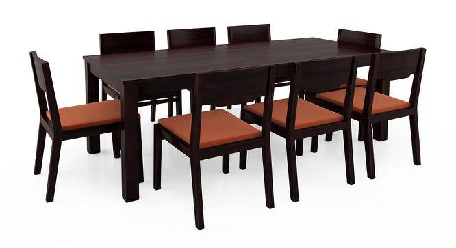 A sleek, modern dining table set with six chairs, each with a brown cushioned seat and backrest, and a matching brown wooden frame. The table has a smooth, dark brown finish and is set against a white background. | Arabia XXL - Kerry 8 Seater Dining Table Set (Mahogany Finish, Burnt Orange) by Urban Ladder | a1bb80eff9d8eae7ca817cb6e7508d84958fa140ae8e3a4a312e6b9ced3a86fa | 000910687301 | 0 | 0 | 38 | 16 | 0 | 0 | |