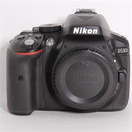 A black professional camera with the brand name 'Nikon' written on the top is displayed against a white background. The camera has a large lens with a black rubber grip and a red button on the front. The camera body is sleek with a silver ring around the lens and a black dial on the top left side. | Used Nikon D5300 Body thumbnail | 6bbfd445f8a60867f0e27fb0cddcf81fd21cd36a987551fce9b0fe0c96243f3a | 000910710465 | 0 | 0 | 58 | 5 | 0 | 0 | |