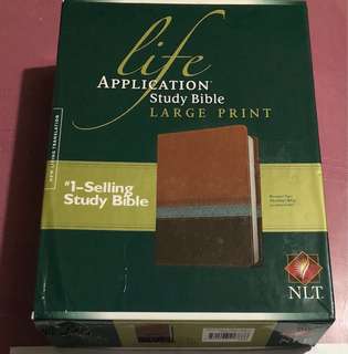 A large, green box with a gold and white design is open, revealing a large, brown study Bible with a gold cover. The box is on a pink surface, and the Bible is titled 'LIFE APPLICATION STUDY BIBLE LARGE PRINT'. | Life Application Study Bible NLT, Large Print from US BNEW | 29406a733e51d37b84ee917805de613478c4b0ef6e7d77c117745742d9d84320 | 000910710558 | 0 | 0 | 40 | 10 | 0 | 0 | |