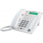 A white corded telephone with a green screen displaying the time and date, and a keypad with numbers and function buttons. The phone has a white handset with a coiled cord, and it is placed on a white background. | Telefon proprietar Panasonic KX-T7735CE, analogic, alb | 4e101e8d25f7ca9c19a91a196f4e8838cebcb8644d84c2d98da4ff0afb482fdb | 000910710611 | 0 | 0 | 39 | 6 | 0 | 0 | |