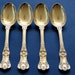 A set of six silver spoons with intricate designs on the handles, arranged in a row on a blue surface. | Tiffany & Co Sterling Silver Place/Soup Spoons ENGLISH KING 1885 M-antique flatware 7 inches-set of 4 | 6d732d978beef67d19e9ceeba8be872fe5ad1db58ddb5f6814ef3c5f9c1c8500 | 000910710615 | 0 | 0 | 20 | 16 | 0 | 0 | |