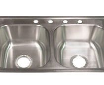 A stainless steel double sink with two bowls, each with a drain hole in the center. The sink has a shiny surface and is set against a white background. | stainless steel sink | fdac05717c636527dffe33be94281a8b1a449086b7bf1215ae3a24c2eee60bc9 | 000910711197 | 0 | 0 | 29 | 3 | 0 | 0 | |