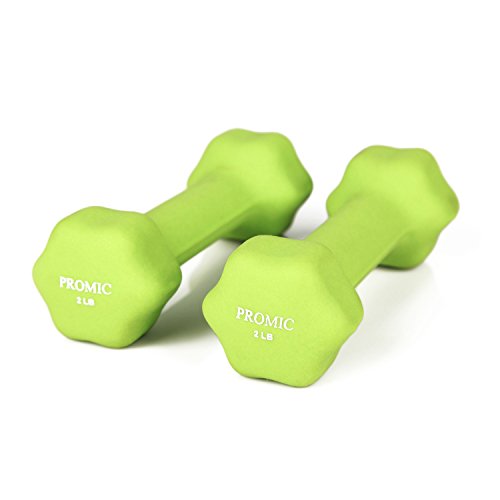 Two green dumbbells with the brand name 'PROMIC' and weight '2.5LB' are placed side by side against a white background. | PROMIC 1 to 20lbs Neoprene Dumbbells Hand Weights, Soft Non-Slip Grip (thirteen Colours) – Sold in Pair – DiZiSports Store | c710237e4c9af5f61afee6023ee8bc298085e32273b4e83bdcc1853a9b511698 | 000910711193 | 0 | 0 | 20 | 20 | 0 | 0 | |