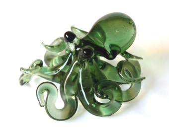 A green glass sculpture of an octopus with a smooth, glossy texture, featuring eight tentacles and a bulbous head with two black beads for eyes. The sculpture is set against a white background, and the lighting highlights the glass's transparency and the intricate details of the octopus's form. | Small Glass Octopus pendant Transparent Green | dd9e2827a4fd5938d587bd9073d1fbeb0b1af94295536fe356f1b5fe8670b2be | 000910711104 | 0 | 0 | 48 | 6 | 0 | 0 | |
