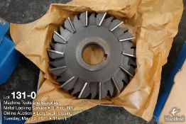 A large, metallic, serrated saw blade is prominently displayed in the center of the image, surrounded by a brown paper packaging material. The saw blade has a circular shape with multiple teeth pointing outward in a radial pattern. The packaging material is crumpled and appears to be a cardboard box. In the background,... | F&D 6" x 1" milling cutter, 1 1/2" arbor | a876dcf38cb3faf7ba123690e8ca45bae387008ef91e6fe502a0bed54160cbc0 | 000910711172 | 0 | 0 | 76 | 9 | 0 | 0 | |