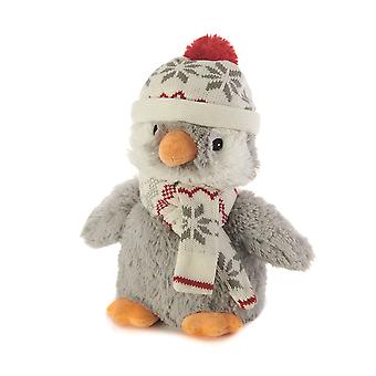 A plush toy penguin with a red pom-pom on its head, wearing a white and grey knitted scarf with snowflake patterns, and a grey knitted hat with a red pom-pom on top. The penguin has a grey body with orange feet and a black beak. | Warmies Cozy Plush Fully Microwavable Toy: Baby Penguin | 39d2ccd4a56b70887634e0fd444c12a829e602989d347831ea63c4f39374f2cd | 000910687435 | 0 | 0 | 45 | 8 | 0 | 0 | |