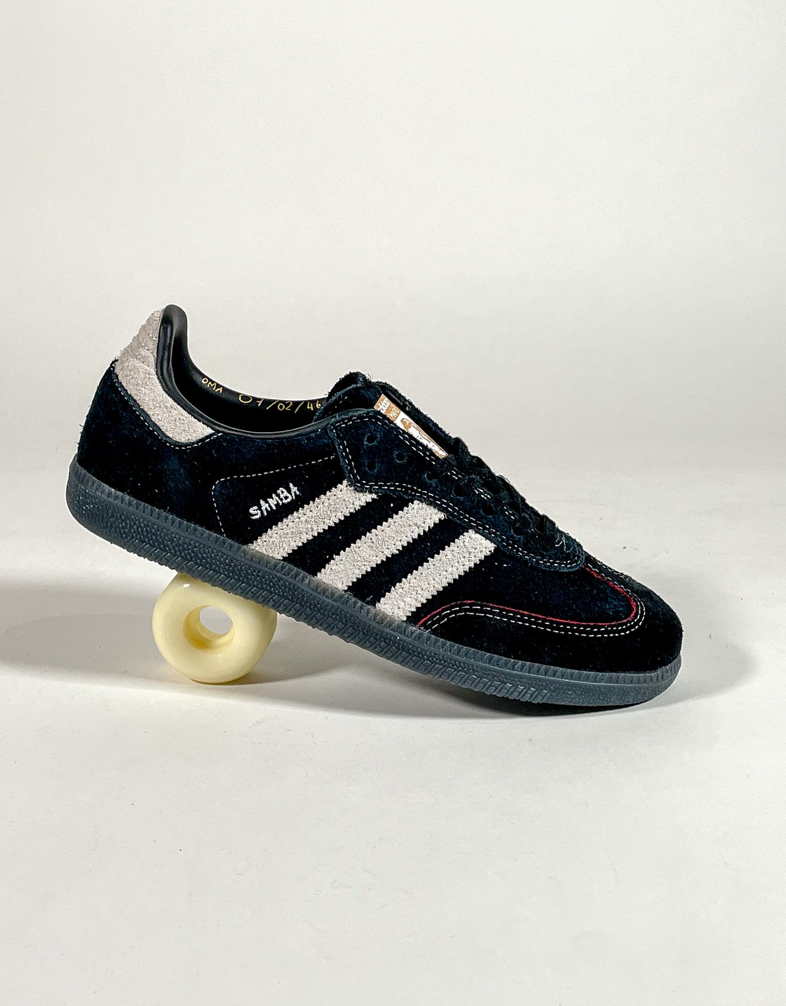 A black and white sneaker with the word 'SAMA' on the side is displayed on a white background. The sneaker is placed on a white surface with a white plastic wheel attached to the bottom of the sneaker. | ADIDAS ADIDAS MAITE SAMBA ADV - CORE BLACK/CLOUD WHITE/CORE BLACK | 8f7d9ac0e10f16cc87a2607a9cb28bf67310486e68d2e0ff18b1a216946ac045 | 000910711805 | 0 | 0 | 38 | 10 | 0 | 0 | |