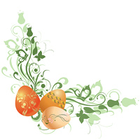 A stylized illustration of two eggs with intricate patterns, one orange and one yellow, surrounded by green leaves and swirling patterns. The eggs are placed on a white background with a decorative border of green leaves and swirls. | Vector Illustration of beautiful floral frame decorated with Easter Eggs. | 2b5ee9806994fad25c7463209a030d17db23a17a69f7a14511bf5e61f6f9b4f1 | 000910711737 | 0 | 0 | 38 | 10 | 0 | 0 | |