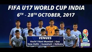 The image displays a group of young men standing in a line, wearing white and black jerseys with numbers on them. They are posing for a team photo, and the background features a dark blue gradient with the text 'FIFA U17 WORLD CUP INDIA 2017' and the dates '5th - 28th OCTOBER, 2017' at the top. The text 'VENUES' is pro... | India Under 17 Football Team for the World Cup 2017. State wise sel... | e13582ed15f6b0d64674d510d3775b1a033dc7d2f0afa03ea79b7797449dea08 | 000910711831 | 0 | 0 | 79 | 13 | 0 | 0 | |