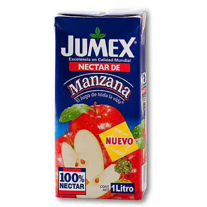 A blue juice box with a label that reads 'JUMEX' in white letters. The label also features a red apple with a green leaf, the words 'MANZANA' and 'NECTAR DE MANZANA' in white, and '100% NECTAR' in red. The background is a plain white color. | Apple Juice 1L | 085c044295857c5326453d7c46ae8a49d0931981fafe7483cda83775da1fc06c | 000910711746 | 0 | 0 | 45 | 3 | 0 | 0 | |