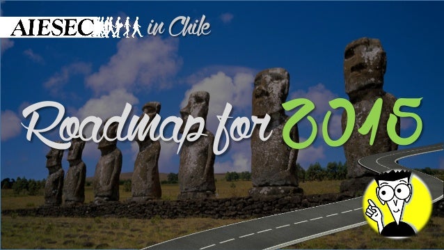 A scenic view of a road curving through a landscape with large, ancient stone statues on either side. The sky is blue with a few clouds, and the road appears to be in Chile, as indicated by the text 'AIESEC in Chile' at the top. The road is marked with a 'Roadmap for 2015' sign, and there is a cartoonish character with... | in ChileRoadmap for2015 | e1420a47628a7b84c78df232ad55451d80595c387391c082dd8864650d607a47 | 000910711919 | 0 | 0 | 69 | 3 | 0 | 0 | |