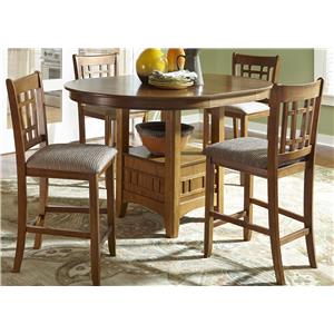 A wooden dining table set with four chairs, one at each corner, is placed on a patterned rug. The table has a round top with a decorative center and is surrounded by a wooden base. On top of the table, there is a bowl with a yellow fruit and a vase with a yellow flower. The chairs have wooden frames and beige cushions ... | Vendor 5349 Santa Rosa 5-Piece Bar Stool and Pub Table Set | 6440e9fb2ee386c8b2418e9242b5aa5750f84b698c4b7fc78955a92e8d4318c7 | 000910712569 | 0 | 0 | 67 | 11 | 0 | 0 | |