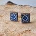 A pair of blue and white ceramic earrings with a geometric pattern, resting on a beige surface with a subtle texture. | Portugal Blue Antique Azulejo Tile 925 SILVER Post Stud Earrings from Ovar (see photo of actual facade) Gift Box Included 621 S | 2a5cda20f3f13bc8b0632ed03bf22d0592358dde787a682c81e70e736846b91f | 000910712347 | 0 | 0 | 21 | 22 | 0 | 0 | |