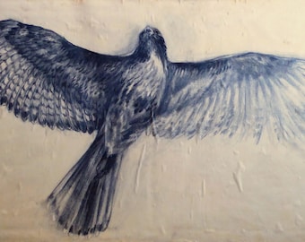 A detailed blue ink drawing of a bird in flight, with its wings spread wide and feathers depicted in various shades of blue. The bird is positioned against a white background, and the drawing is highly detailed, showcasing the texture of the feathers and the bird's form. | Taking Flight - Original mixed media painting - Hawk, Falcon, Raptor | 1441fc0115c76607cc6d7b7e8196741a26a1e14a4424faf2307ce5ff21446afb | 000910712822 | 0 | 0 | 47 | 11 | 0 | 0 | |