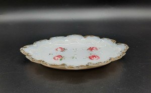 A white porcelain bowl with a floral pattern and red berries sits on a reflective surface. | Vintage Milk Glass Oval Trinket Dish Raised Painted Roses 6" long | 3212a16c9a1495aa91f235dee0bc6b203e2243090ad9bcafd5f1d867958ba750 | 000910713450 | 0 | 0 | 16 | 11 | 0 | 0 | |