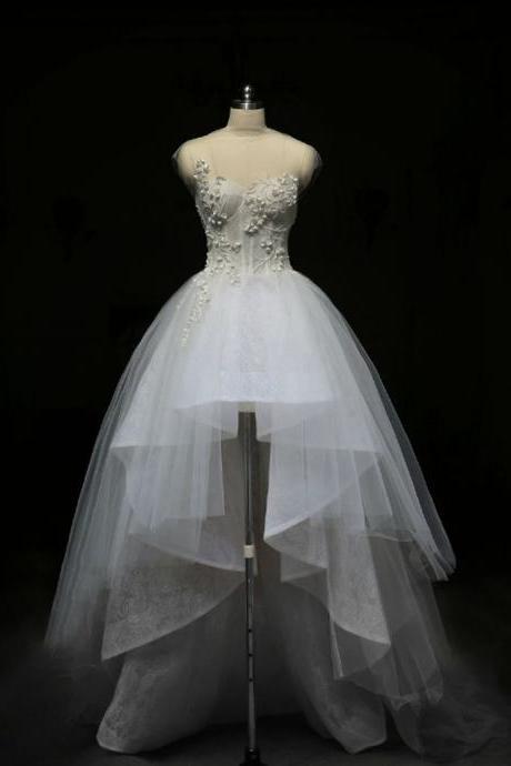A mannequin is dressed in a white wedding gown with a full skirt and lace details on the bodice. The gown is displayed against a dark background, and the mannequin is positioned on a wooden floor. | High Low Weddding Dress,High Neck Wedding Dress,Lace Wedding Dress,Wedding Dresses,Short Sleeves Wedding Dress | 9b3d50a5500794d88f34fe23dd45036a1fcb954e89c236cd42017a83c5cce5d9 | 000910714364 | 0 | 0 | 36 | 13 | 0 | 0 | |